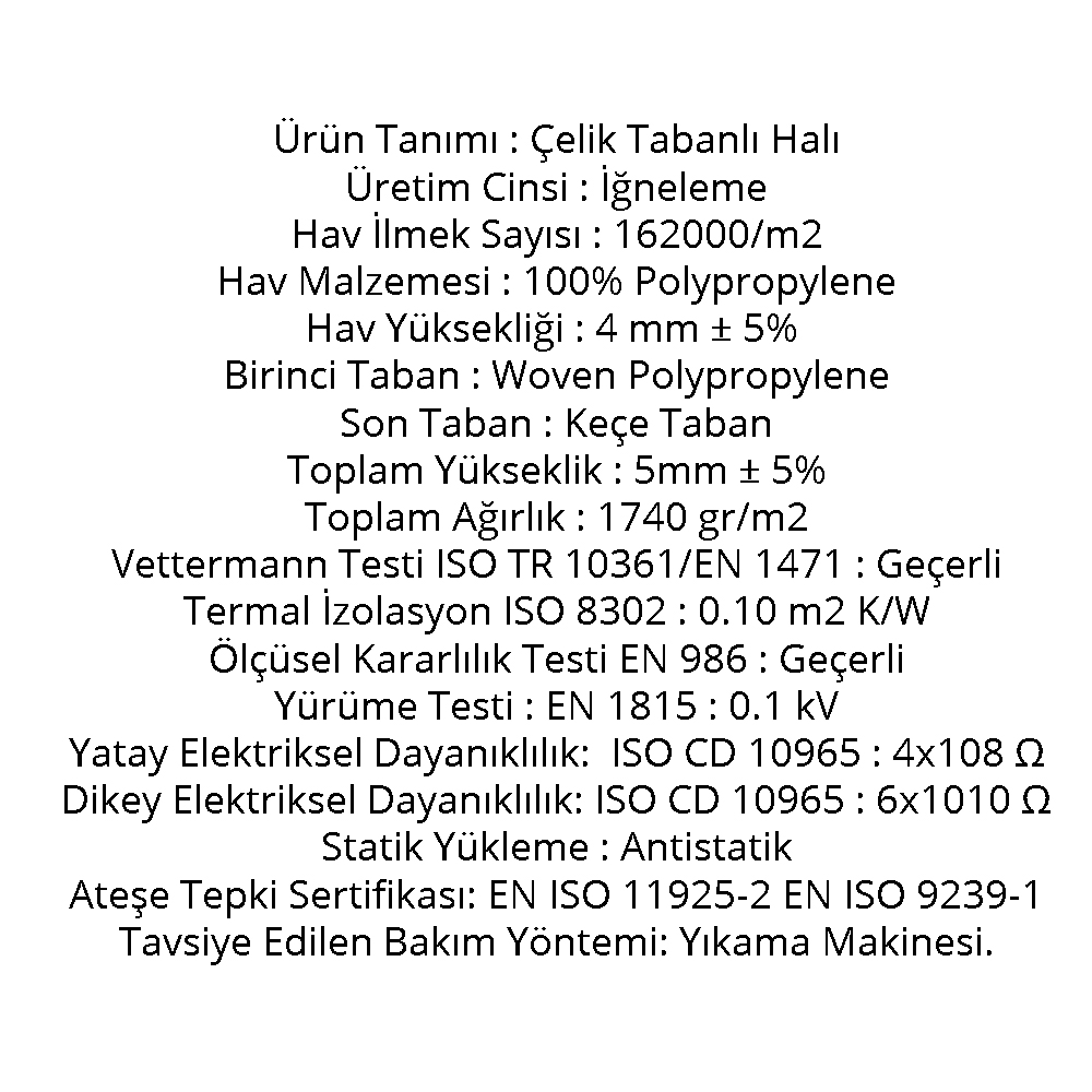 Ateşe Tepki Sertifikası: EN ISO 11925-2 EN ISO 9239-1
