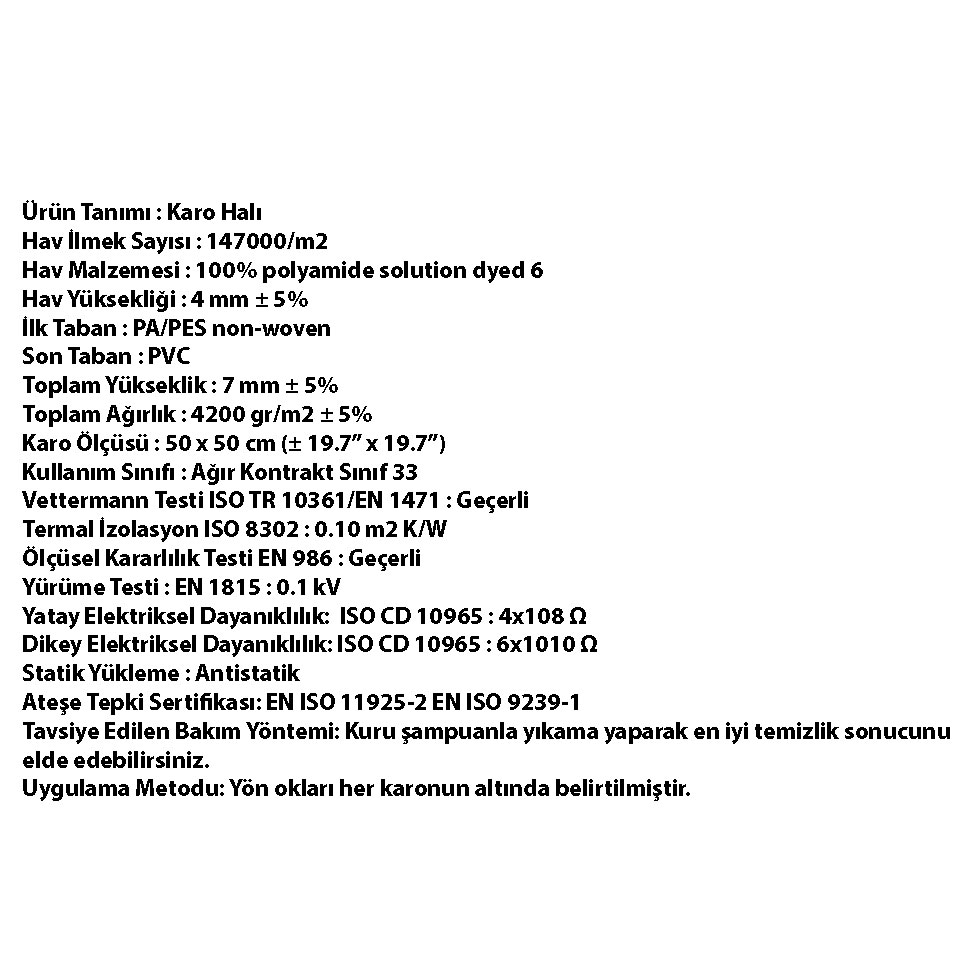 Karo Ölçüsü : 50 x 50 cm (± 19.7” x 19.7”)